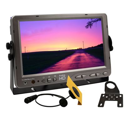 7in LED backlit AHD monitor with two monitor mounting options and universal camera mounting bracket.