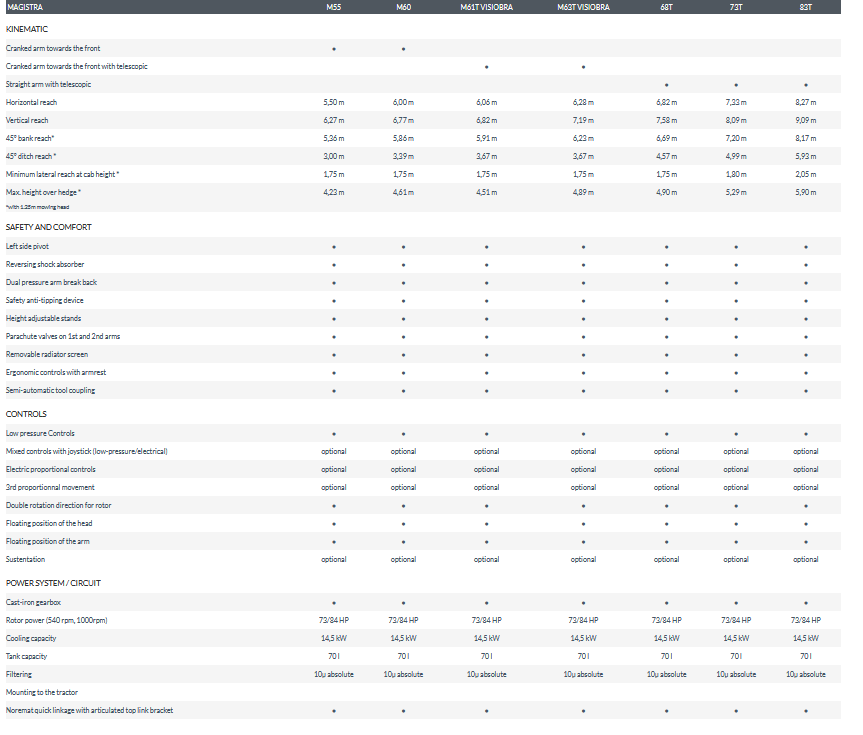 Designed forintensive use of more than 1500 hours per year, the Magistra range of reach mowers and flails takes on meetsall verge maintenance worksof contractors, road-side maintenance companies, councils, local authorities... A large choice of configurations is available that may be tailored to your requirements: