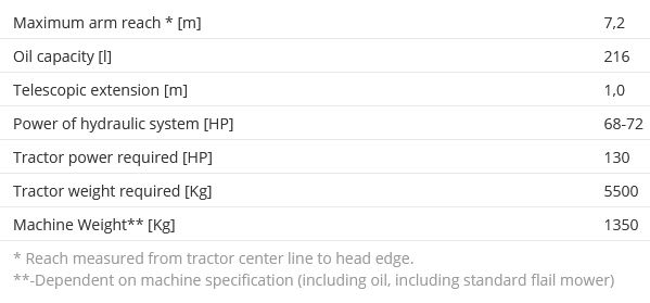 The KR700z series Mowers offer professional quality long reach mowers in a rear mount three point hitch package. The KR700z series is available with three sizes of flail mower, requiring a 130-160 Hp tractor and maximum reaches of 20.5-23.2 feet.