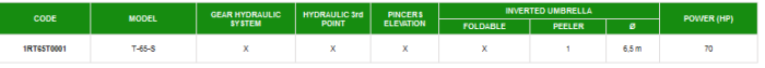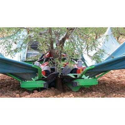 Hitched on the rear 3 points of the tractor, run through PTO shaft. Hydraulic hoses to run the unloading of almonds and regulation of the third point are connected directly to the tractor. Hydraulic central integrated on the harvester. In-cab electrical control box. Simultaneous opening movements of both umbrella and pincers. Independant regulation for peeler. Independant regulation for inverted umbrella.
