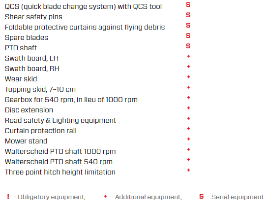 - Swath width (m) 1,40 - 1,80