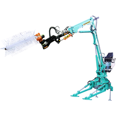 Olipicker, rear-mounted three-point hitch machine for olive harvesting. The new patented tooth which, with its particular shape improves considerably the detachment of the fruit and decreases the impact on the plant.