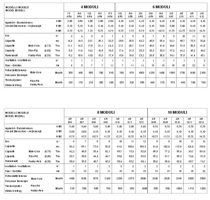 The AR series takes advantage of recirculating batch drying. This is a special technology which is particularly suitable for those who need to dry small quantities of product and/or with high product rotation. These dryers are particularly effective for drying rice.