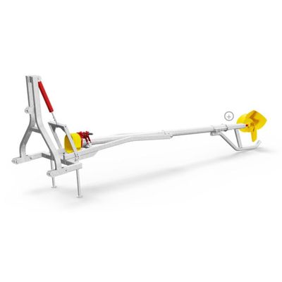 The mixer model Jaguar can be used in small slurry pit openings (from about ø 60cm) due to the cranked folding frame. The attachment of the mixer is on the tractor’s three point linkage (draft and upper link). Easy and smooth insertion of the slurry mixer with the additional hydraulic cylinder, independent of the tractor’s hydraulic which is often inexact. A regular and even bending of the two universal joints of the standard cardan shaft is possible through the hydraulic cylinder and the tractor’s hydraulics. This allows operating with little wear on the standard cardan shaft. The folding PTO mixer Jaguar is available from 4,60 m to 7,60 m length (interim lengths are available on request).