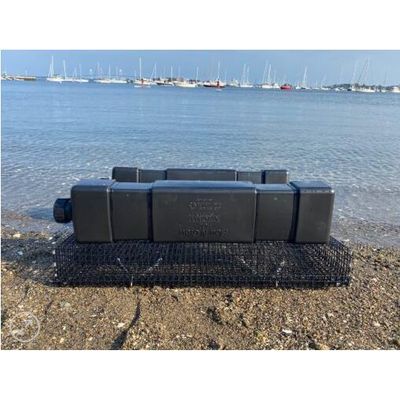 Feature 2 x Flow N Grow 16L liter floats with cap at one end. Trays may be sunk for the winter, or ahead of storms.