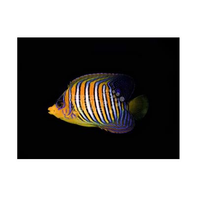 Indo-West Pacific, ranging from Red Sea and east coast of Africa, through most Indian Ocean islands to Western Pacific from Japan to Australia and Pacific east to the Tuamotu Archipelago. Occurs in coral-rich lagoons on shallow reef flats and along walls near caves or ledges to depths of 80m where they feed primarily on certain sponges. Juveniles secretive in caves and usually seen solitary. Adults in pairs and occasionally in small groups. Readily identified by the patterns of many alternating orange, blue and white vertical stripes. Two distinct colour variations between Pacific and Indian Ocean. Most obvious in adults is the grey (Pacific) versus yellow (Indian) chest. Being more colourful in general makes the Indian Ocean form more popular amongst aquarists. Juvenlies are similar to adults but feature a distinct ocellus at the rear of the base of the dorsal fin.