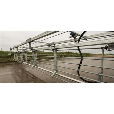 Sale Price is Instaled and operating. Runs on "I" Beam (anti de-rail). Drives on side of "I" Beam. Drive on the top of "I" Beam. Has breech sensor as standard (prevents bulldozin; of cows). Has audible alarm. 2 speed forward and reverse. Pulse forward auto-stop Gate pause when lowering. Spans16 Metres (We can span further on a case by case basis). High / Low rail options (optional 1200 mm to 1700 mm heights). Bolt together. Pre-wired Plug ft Play Electrical System