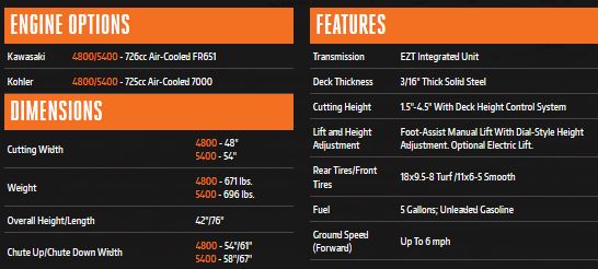 Dual Integrated Drive Systems provide reliable, self-contained power and performance. Features strong 2˝ x 2˝ all steel rail frame for its backbone with 3/8˝ steel front forks. The solid steel, all-welded deck, formed from tough 7-gauge steel with reinforced edges, features a baffling system to maximize airflow for greater grass lift and a cleaner cut. The frame rides on a lower center of gravity for better traction.