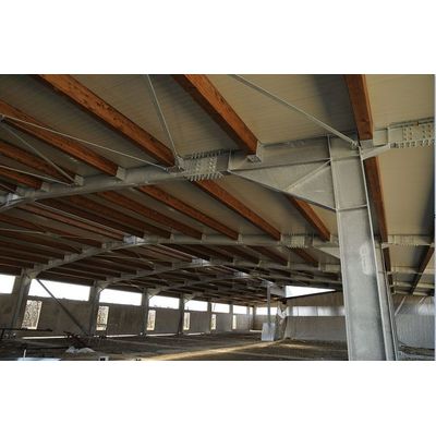 - Double-pitched shed with ventilation hood with pillars and reinforced capital.