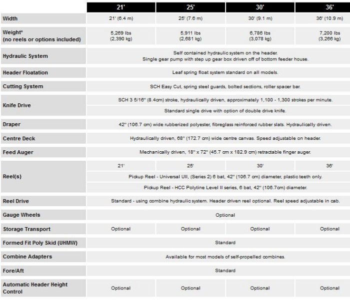 Hydraulic drive cross augers assist in material flow from the drapers to the feed auger. The auger is adjustable to match varying crop conditions and increases combine capacity in bulky crops like peas and mustard. 20’ augers are available on all headers and 30’ augers are available on headers 36’ and longer.