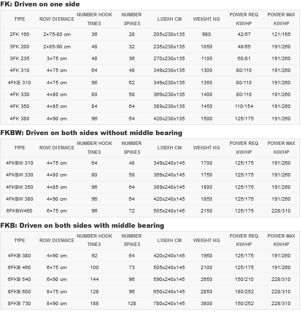 • FKBW rotor shaft driven on both sides without middle bearing, exist of a fixed frame, 3-point connection Cat III