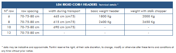 Fantini - Model L04 Series -Rigid Corn Harvesting Header