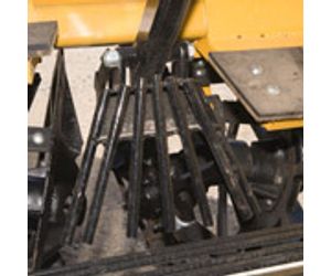Hinged Front Barrier Bracket lets material in not out for less beet loss and jammed debris.