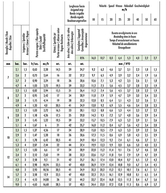 - Automatic stop in case of lack of water pressure, patented rewinding speed self-compensation system.