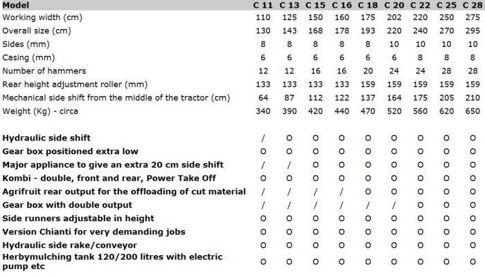 This is a very robust mulching machine with a particularly strong blade carrying rotor. This is a machine ideally suited for the shredding of pruning cuttings, for grass cutting and for shredding maize stalks. The transmission works with 4 or 5 belts (depending on the model) which guarantee the optimal use of power. The blade carrying rotor is electronically balanced. This, and the use of ball bearings or tapered ball bearings (depending on the model), guarantee durability and strength. The roller at the rear, adjustable in height and with a large diameter, is provided with two bearings so that the machine remains constantly in touch with the ground.