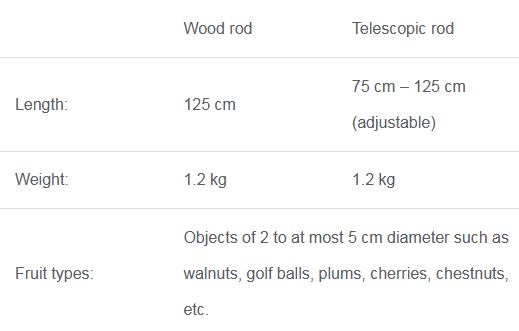 The Rollblitz medium can be used for ball-shaped objects of 2 to at most 5 cm diameter. With the pick-up device, fallen fruit can be picked up easily and conveniently without bending over or crouching. Buying the Rollblitz also supports our cooperation with people with disabilities. The Rollblitz is a product Made in Germany made of high-quality components. The wires of the picking ball are made of stable steel (2,000 N/mm²), which ensures very good storage. Even after long periods of use, wires will not become jammed. The Rollblitz medium is available with a wood rod or a length-adjustable telescopic rod.