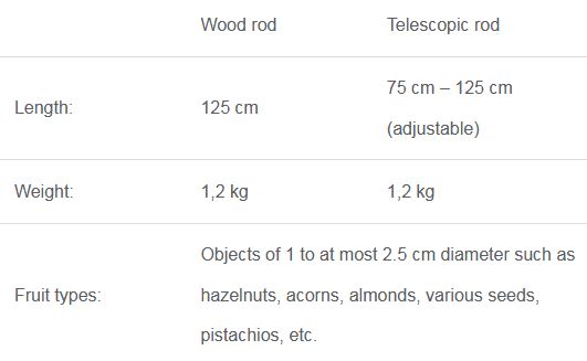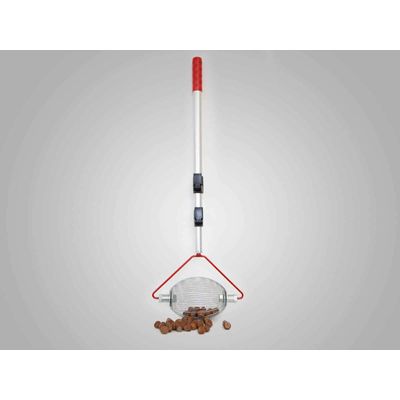 The Rollblitz small is suitable for small objects from 1 to max. 2.5 cm diameter like hazelnuts. With the Rollblitz, ball-shaped objects can be collected with great ease. Simply drive over the ground and the fruits are in the wire basket. Thanks to its high-quality processing, the Rollblitz has an extremely high service life. The extremely stable steel of the wires (2,000 N/mm²) ensures very good storage. This collection device is made in cooperation with mentally and physically limited persons. The Rollblitz small is available with a wood or telescopic rod.