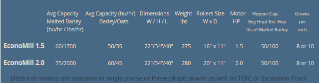 The EconoMill comes standard with a 1.5HP TEFC Motor in single or 3 phase.