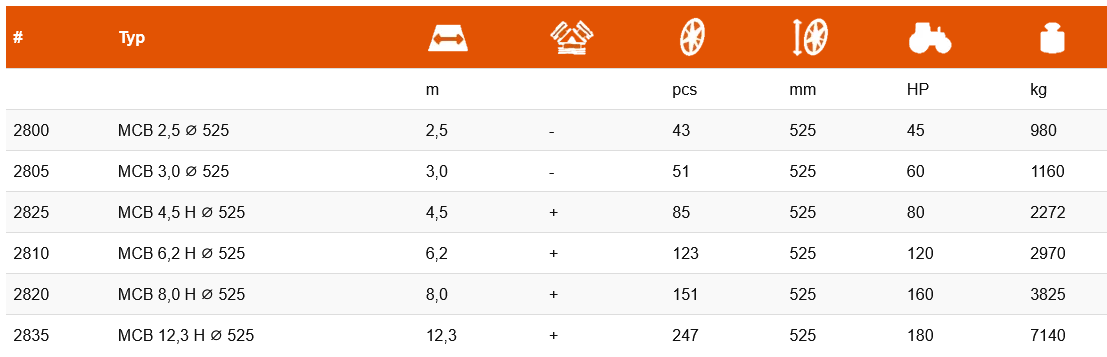 The Cambridge MCB/MCW rollers can be used for post-harvest works to speed up the process of straw and harvest rests decay. Then can also be used on grassland and meadows. Their main function is to smooth the field, maintain soil moisture and improve soil structure. The Cambridge cast-iron 525 mm diameter wheels serve as working elements. Additional, individually height adjusted, leaf spring cultivator section is standard on MCW models.