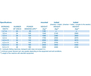 Wide program of Rolmako disc harrows includes machines with a rigid frame and hydraulically folding, of mounted or trailed version with working widths from 1,25 m m to 6,00 m. Numerous equipment options, flexibly adapt harrows to the requirements and conditions in the workplace. A multitude of the machine's available configurations makes it also apply in small, medium and large farms, as well as in service companies.