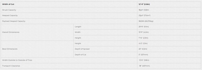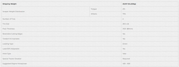 - Rugged 23 yd³ (17.6m³) scraper with heavy duty plate frame construction for maximum strength and rigidity.