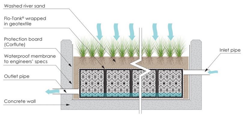 Reduces stormwater runoff of roof gardens to roads and releases clean water! Atlantis continually develops innovative products and systems to convert the concrete jungle into a sustainable Green City. The use of permeable surfaces, such as a roof garden, allows rainfall to immediately soak into the ground. This practice not only reduces stormwater runoff but also facilitates rainwater harvesting through underground water carriers and tanks.