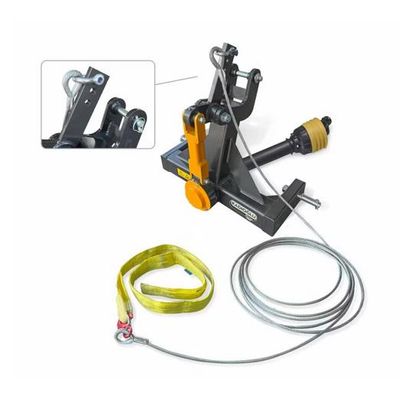 The belt at the end of the steel rope is tied to the flexible main branches of the tree or, if the tree is young, to a section of the trunk where it can flex as the crown begins. The tractor moves forward to take up the slack in the rope. When the power take-off (PTO) is engaged, the tree begins to shake, and the fruit detaches from the branch and falls. The shaking intensity and speed are controlled by the tractor.