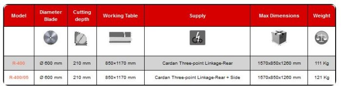 In terms of safety, the protective carter of the moving pieces and the saw blade pto cover makes the machine extremely secure and manageable. The Roller-bench saw is equipped with a sliding table that allows to work in a more comfortable way, in fact it allows to have more surface available for the support of the wood.