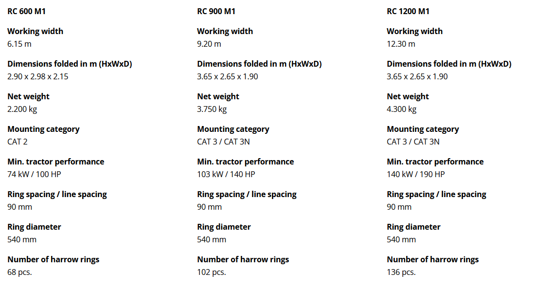 - Optional hydraulic sectional lifting of each 1.5 m wide section