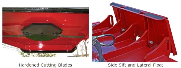 Available in 60”, 72” and 84” for 30 to 100 hp. high flow not needed. lateral and vertical float. adjustable side slides. hardened cutting blades. hydraulic motor 30 hp @ 20 gal/min with 40 hp gearbox. can be fitted on any front end loader or skidsteer. easily adjusts without tools for cutting along ditches, fences etc.. side shift for cutting under fences etc.