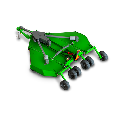 A single domed 10ga continuously welded deck makes the cutter extremely easy to clean, prevents water pooling, rusting and helps shed debris. An 80° CV shaft allows for smooth power transmission during tight turns. The “Best in Class” drive system features a category 6 CV for 540rpm. The drive line on the cutter itself employs self-adjusting friction clutches to protect your investment and always operate at peak performance. Equipped with Schulte Super Suction Blades with 6.5 ” blade overlap for maximum grass lift and cut. A four gearbox drive line with independent slip clutches. Deck protection rings are standard and protect the cutter deck from rising blades. Deep 13 5/8” deck combined with high blade tip speeds, provides a faster cut rate than competitors. High flex wing working range of 25° down to 90° up.