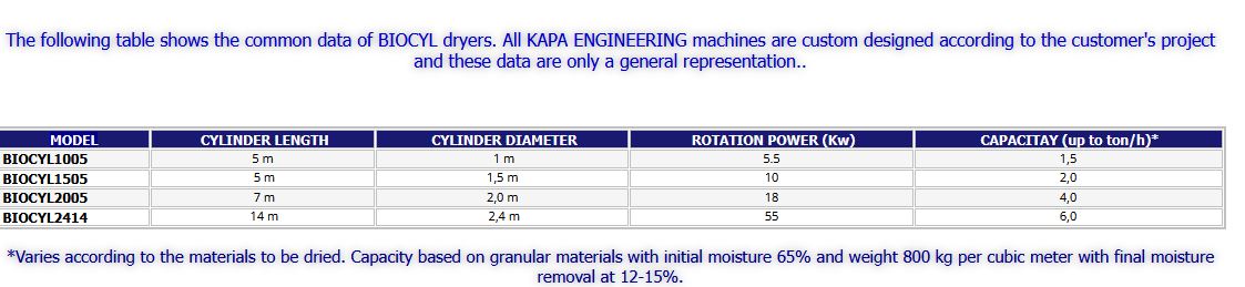 - Kapa - Model BIOCYL - Rotary Drum Dryer