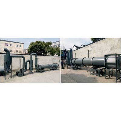If the raw material moisture is higher than 40%, and the production capacity is large, usually we suggest using rotary dryer. The fuel of the dryer is hot air which is offered by the hot air stove. The hot air enters into the dryer by the pipe, and the raw material enters the hopper of dryer at the same time. The raw material is rotated continuously through spirals inside, causing the material to be dried at high temperature. The dried raw material is sent to the discharging cyclone by suction fan. This kind of dryer can achieve the effect of drying uniformity, short time, high efficiency and low energy consumption.