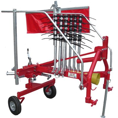 Rotary rake GA 3PL of DCM is the light version of GA 3PN. Available in 3 meters version with the gearbox into an oil bath with 8 arms. Available "absorber kit"and "twins wheels kit". STANDARD SUPPLY: PTO shaft