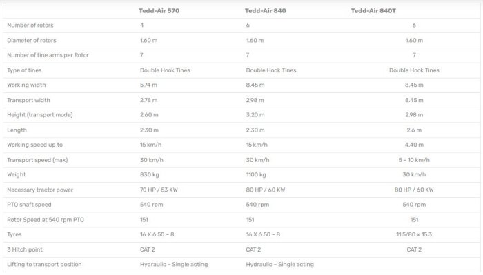 The MALONE Tedd-Air rotary tedder range enables the farmer & contractor to increase the dry-matter content in your crops quickly by speeding up the drying process. By doing so, you influence the consistency and the quality of your silage. The MALONE Tedd-Air range has a “Double Hook-Tine” design which enables the user to obtain more capacity while ensuring the forage remains free from soil contamination. The ‘Tedd-Air 570”, the “Tedd-Air 840” & the “Tedd-Air 840T”are specially designed for forage tedding and spreading by means of rotating spring tines (double hook tines) attached to rotors
