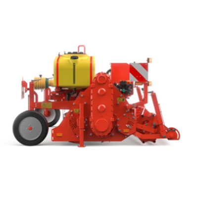 The rotary tiller type GR 300, mounted in the rear or in the front of the tractor, is suitable as a full width tiller for an optimum seedbed preparation for the cultivation of various vegetables and potatoes. An ideal prepared seedbed is the prerequisite for optimum development of the seed resp. planting tubers. Thanks to intensive soil cultivation, the horizon for rooting is optimally prepared so that undisturbed growth of the crop can be ensured. The large number of tines and the high speed of the rotor produce a well crumbled soil structure in fields without stones. With its smaller rotor diameter the rotary tiller type GR 300 requires less tractor power as the rotary hiller GF 400. The combination with a GL 420, GL 430 or GL 420 Exacta is also possible.