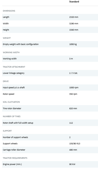 - 3.00 m working width