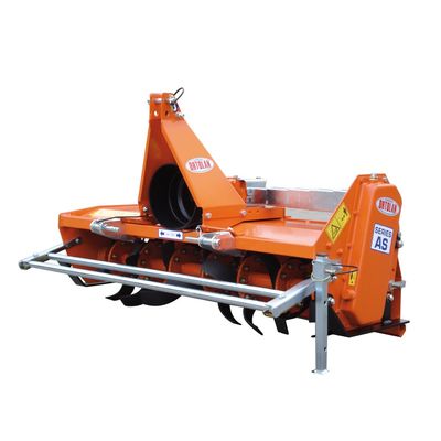Single speed rotary tiller series AS for tractors between 10 and 22 HP (7 - 16KW). The rotary tiller Series AS, designed for preparing small plots of land for sowing, is used in combination with mini tractors. It largely meets the needs of the small farmer and hobbyist. Available in 3 models in different working widths of 90, 100 and 120 cm. 540 rpm speed reducer, cardan shaft with protection, rotor with 4 helical blades per flange, automatic chain tensioner, manual lateral movement, 3-point hitch mechanically shifted by 0° and 1st category.