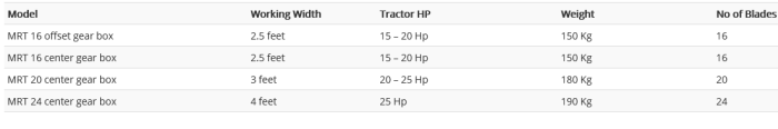 MRT 16 and 20 are designed for inter crop cultivation. MRT 24 is designed especially for orchard applications. Blades overlapping arrangement reduces blades wear.