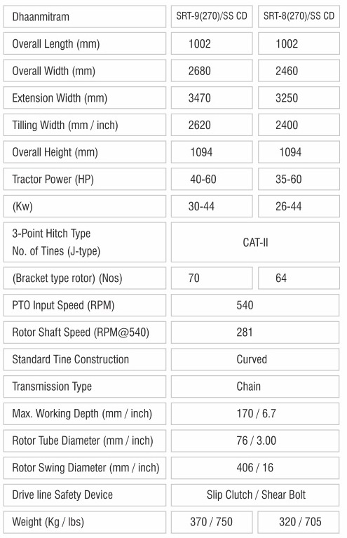 Shaktiman DhaanMitram - Model SRT-9 (270)/SS CD - SRT-8 (270)/SS CD -Rotary Tiller