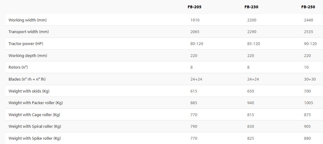 The FB Rotozappa rotary tiller with horizontal axis rotor for excellent soil tillage and crumbling of other crop residues, can be used in different situations. FB is unique on the market due to its gear-driven central transmission. Available in five different working widths from 2.05 to 2.5 m, it is ideal for tractors from 80 to 120 HP.