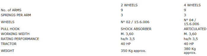 The rotating hay collecter S/ 360 is ideal for collecting hay on small and medium-sized fields; it ensures perfect raking, and creates soft and well-ventilated windrow making collection with the press easier. It is equipped with 3 point linkage. The oil bath unit features 9 arms with 3 shot-peened springs per arm, 2 casters, pull hook with damper, hay canvas, Cardan, pins and CE-approved protections.