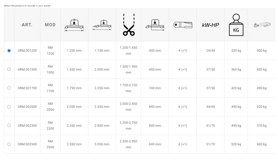 • Machine equipped WITH a mechanical inter-row wheel (right side) with rubber protection ring and return spring (WITHOUT inter-row wheel - on request)
