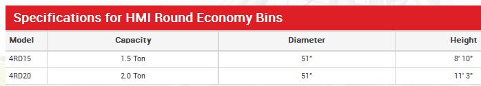 The Honeyville Round Economy Feed Bins offer you just that, an economic way to store your feed products. With 18 gauge G90 galvanized steel in the 52° hopper portion and 22 gauge G90 galvanized steel on the side walls, it offers you years of rust free service. The poly boot can be adjusted from 20° to 50° to accommodate differing auger heights. An optional hand crank auger is available for placement of the bin in remote areas.