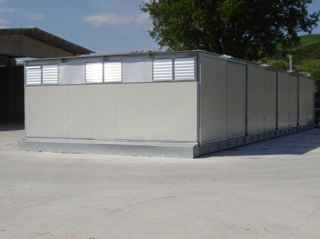 This Compact Hay Dryer with air recirculation dries 32 bales of forage and can accommodate both round and/or square bales. The plant in metallic construction is arranged in 4 rows and can be loaded and unloaded from both sides using a telescopic loader. This Hay Dryer COMPACT model is fitted with a DIESEL generator which powers the electric fan. This COMPACT model uses thermal energy generated by a combustion engine.