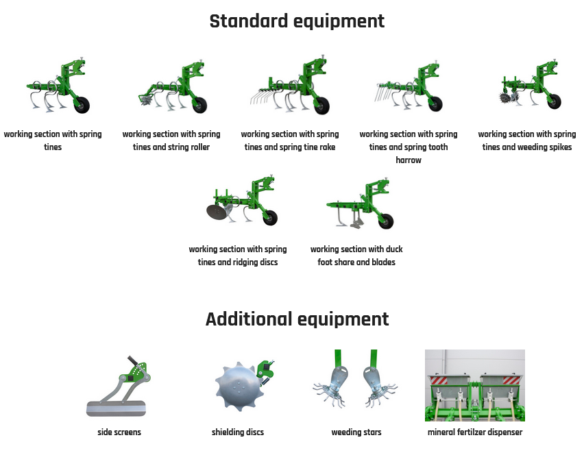 Depending on the crop and intended use, the cultivator can be equipped with a working section with: