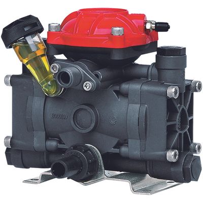 Annovi Reverberi AR252-SP/SGC 650 RPM semi-hydraulic two diaphragm alternating volumetric pump for use in gardening or semi-professional agricultural sector, trolley-mounted in combination with electric motors or internal combustion engines for gardening, and small sprayers for medium-pressure pesticide treatments in gardens, greenhouses, orchards or vineyards.