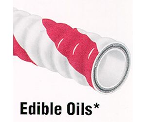 This hose with white FDA grade nitrile tube handles the transfer of all types of oil-based food products, including tallow, olive oil, palm oil, peanut, sunflower, and soybean oil. The Vol-U-Flex® construction with nitrile/PVC cover provides superior flexibility, oil resistance, and low drag coefficient.
