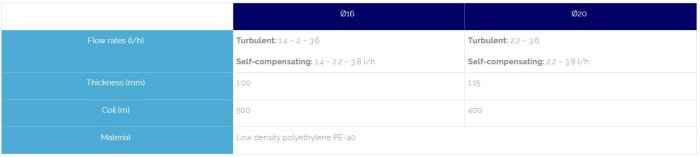 Pipe with integrated turbulent and self-compensating drippers suitable for all types of crops and installations.