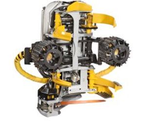 A thinning harvester operates in young sections of forest. In the development of the Sampo Rosenlew harvesters it is the feasibility for thinning that plays a major role. The four-wheel articulated harvester moves swiftly. Articulated steering, a short wheel base and a big turning angle enable an amazingly small turning radius and excellent maneuverability. The SR1066 is not only maneuverable but also strong and efficient when handling wood. The harvester is dimensioned for thinning but can, to some extent, cope with final cutting, too. Tyre width can be chosen between 600 and 700 mm.